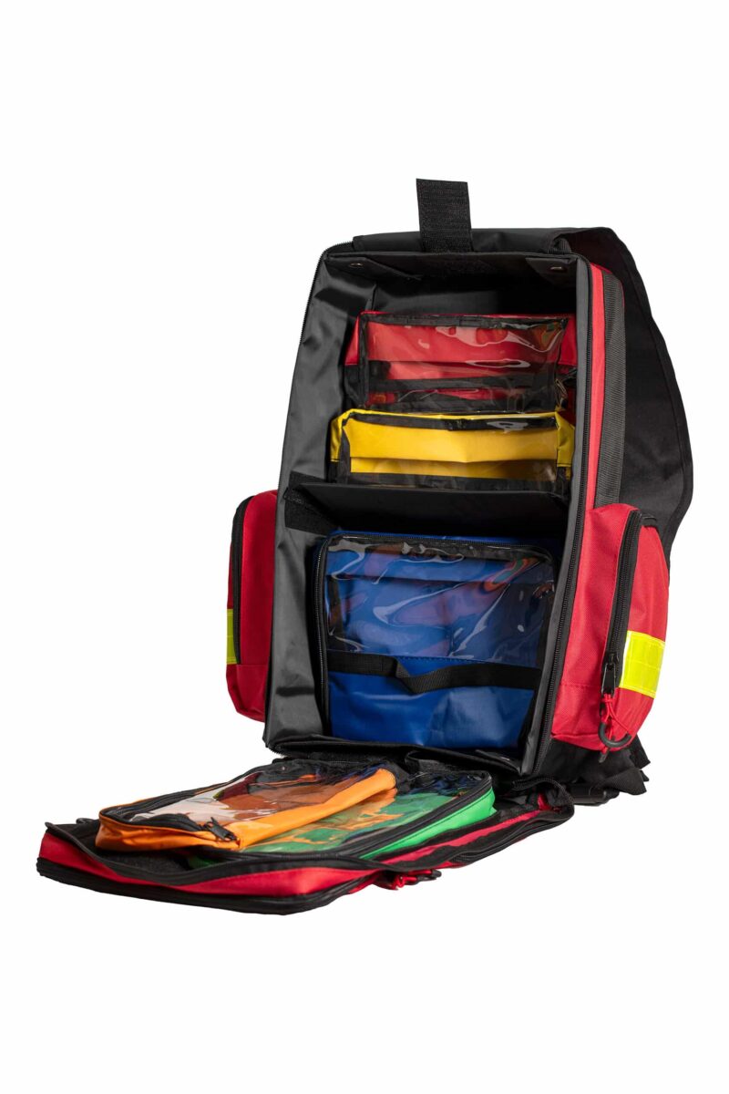 EHBO-nahrbtnik Yellow Large Red je vsestranski, prostoren in robusten nahrbtnik, zasnovan za varno in učinkovito shranjevanje vseh vaših potrebščin za prvo pomoč, vključno z avtomatskim zunanjim defibrilatorjem (AED). Ta visokokakovostni nahrbtnik združuje praktičnost in udobje, zaradi česar je idealen za reševalce, zdravstveno osebje in organizacije, ki se ukvarjajo z reševanjem.