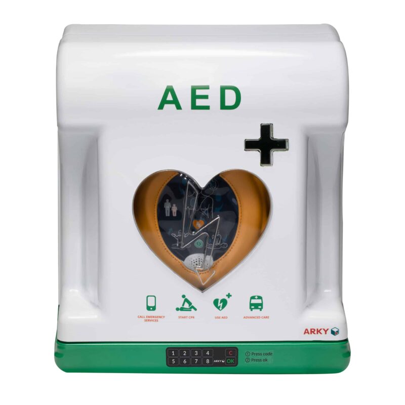 Ta zunanja omarica ARKY Core Plus AED je popolna za varno namestitev vašega AED-ja na prostem. Ta omarica ima digitalno ključavnico s kodo, ki zagotavlja, da je AED zaščiten pred krajo in vandalizmom. Prezračevanje in ogrevanje ščitita AED pred temperaturami med -30 °C in 50 °C. Core ima notranjo osvetlitev, ki zagotavlja, da je omarica vedno vidna.