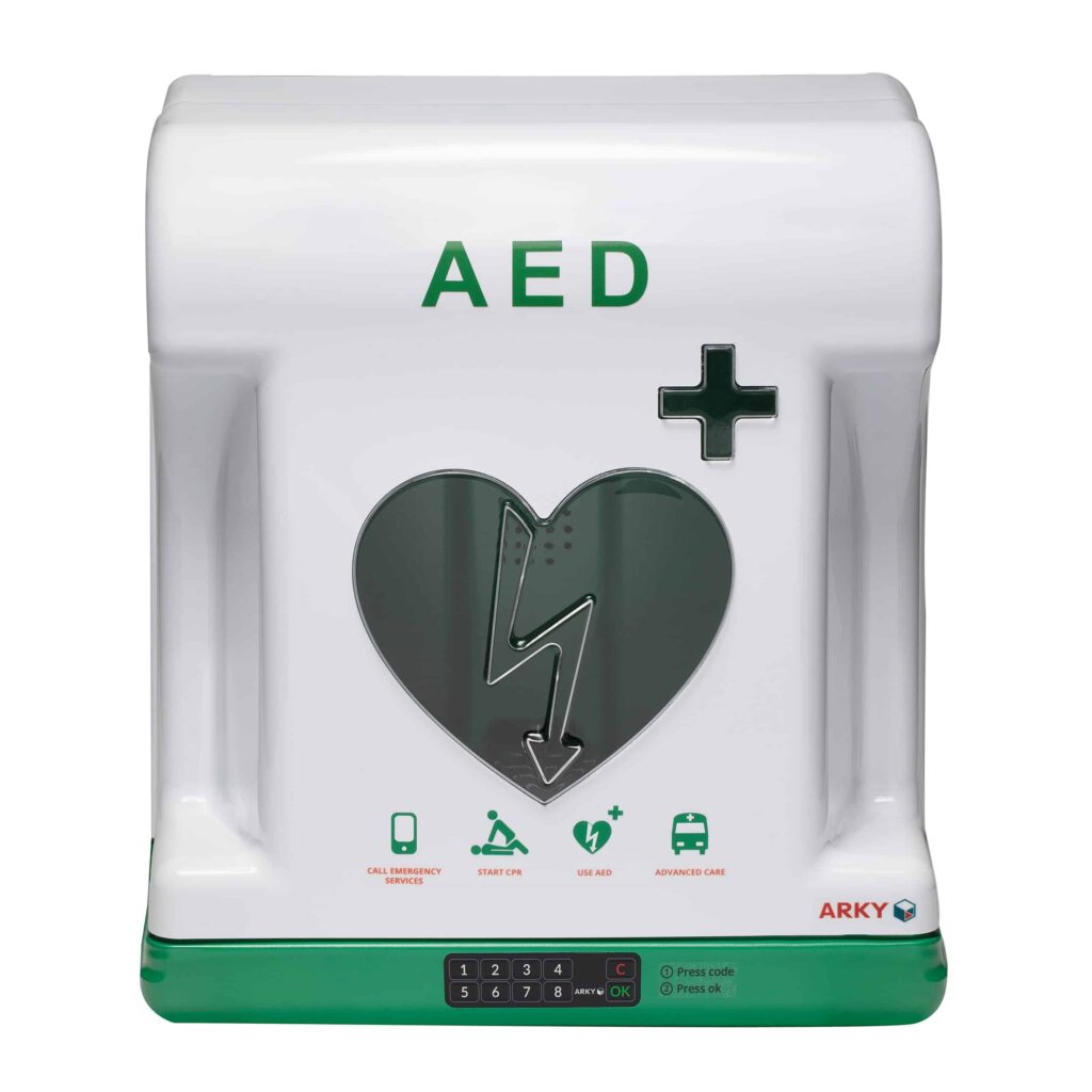 Cena ARKY Core Plus omarice je 629,00 € brez DDV (761,09 € z DDV). Ta izdelek je idealna izbira za vse, ki iščejo zanesljivo in trajno rešitev za zaščito AED naprav v vseh vremenskih pogojih.